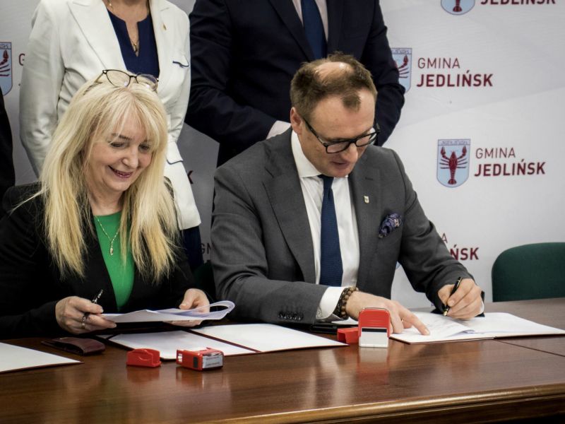 Umowę w imieniu Gminy Jedlińsk podpisał Kamil Dziewierz – wójt gminy, przy kontrasygnacie Ilony Starzyńskiej – skarbnika gminy. Ze strony wykonawcy umowę podpisali Dominik Podsiadło – prezes zarządu oraz Grzegorz Adamus – zastępca prezesa zarządu.